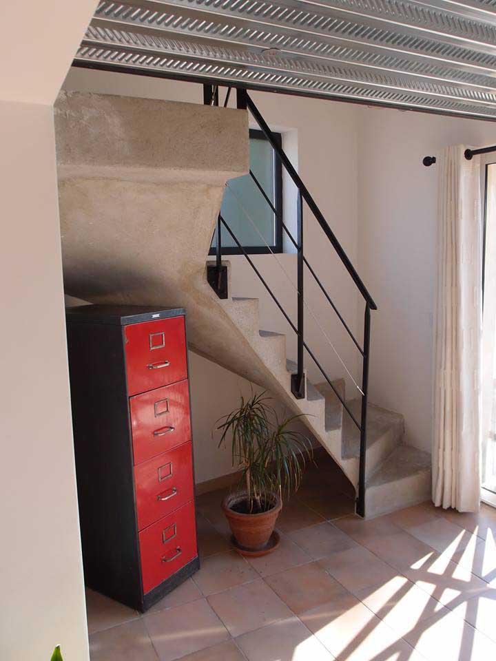 Construction qui tient sur sa propre structure dus à sa légèreté et résistance. La dernière marche fait office de linteau, son ferraillage peut être ancré sur 1 ou 2 côtés.