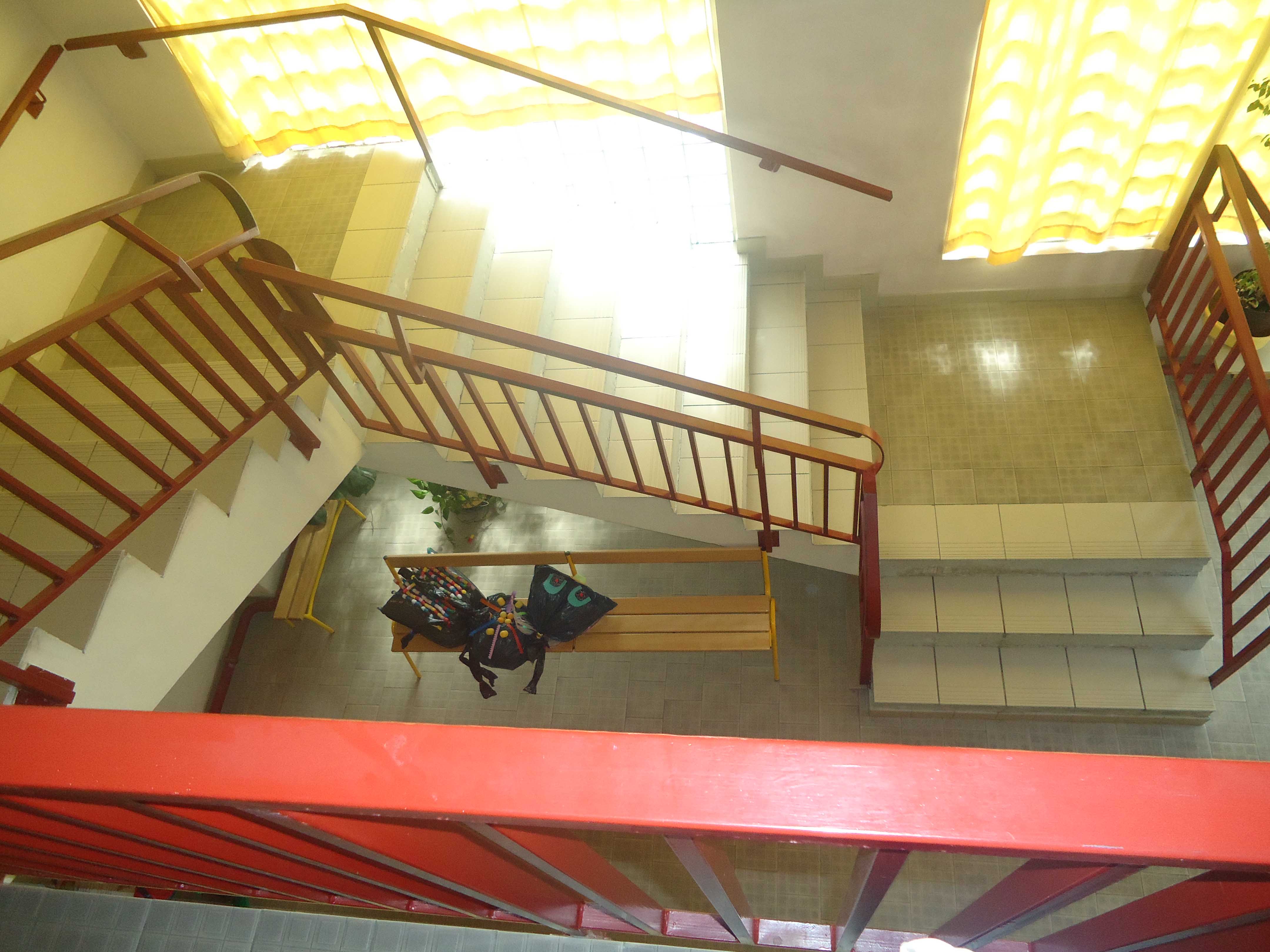 Escalier de 150 centimètres de large, passage d'une fréquentation importante dans les écoles et les lieux publics.